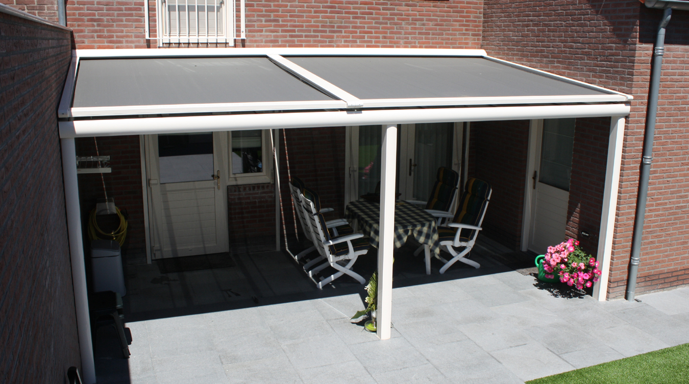 Het acryldoek wordt in alle gevallen op spanning gehouden door middel van een unieke veerconstructie. Voor extra grote afmetingen adviseren wij de Solidare Veranda.